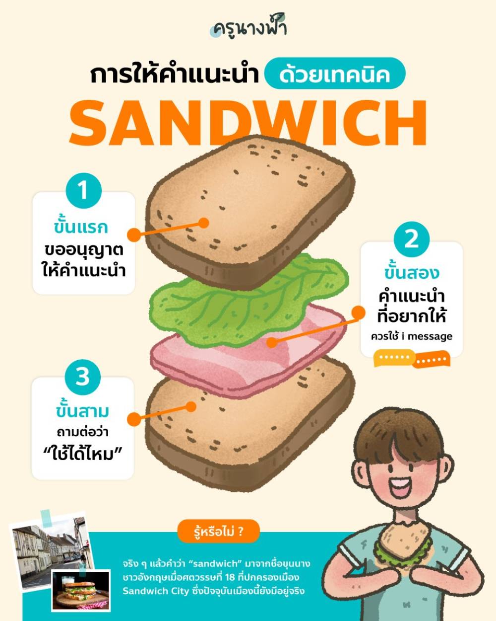 คติพจน์ประจำใจของครูนางฟ้า แต่หลายครั้งมันก็มีความจำเป็นที่เราต้องใช้ประสบการณ์ในการช่วยเหลือเด็กๆ และนั่นคือที่มาของเทคนิก "แซนวิช"